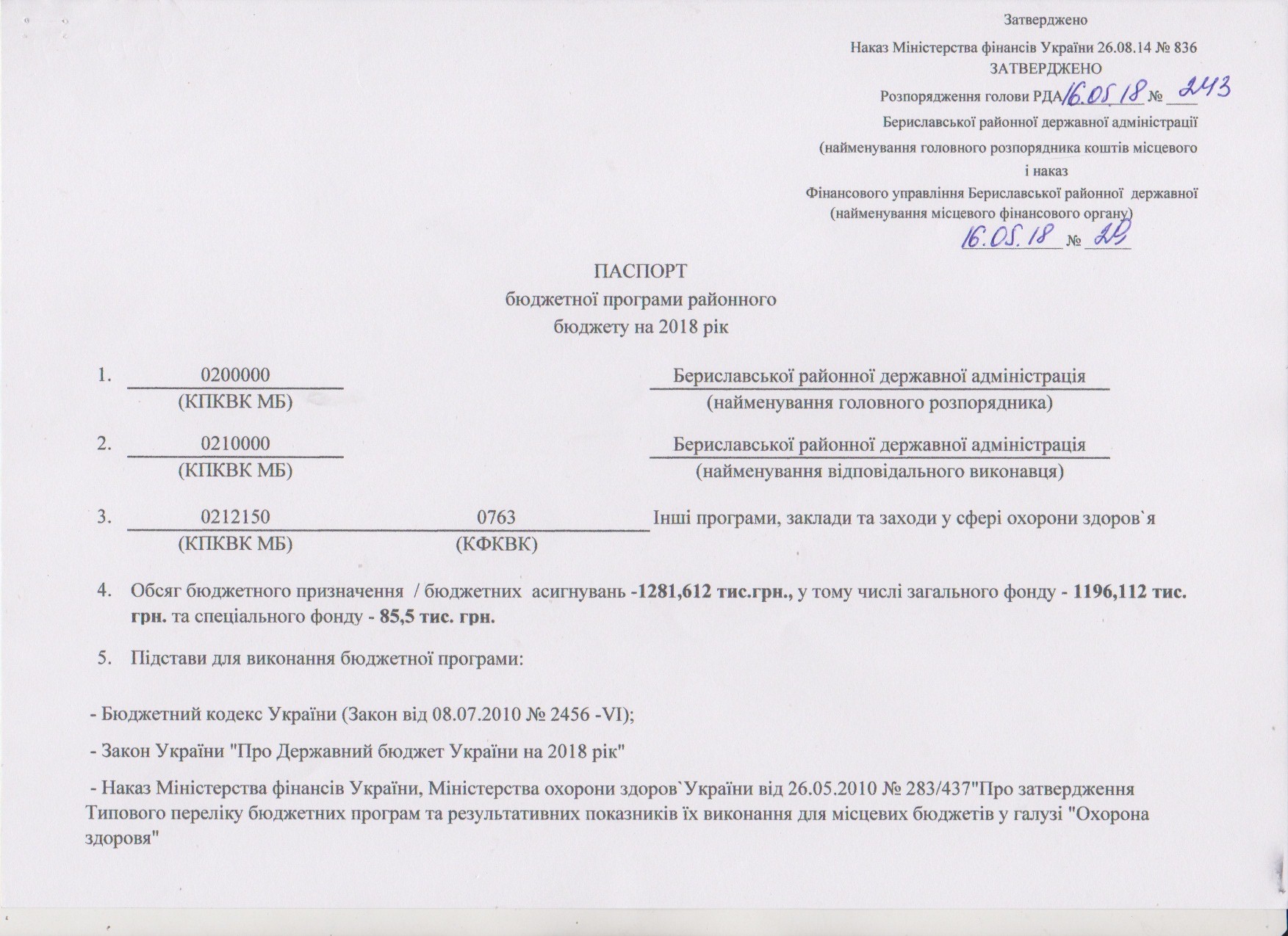 Подяка Бериславській районній державній адміністрації
